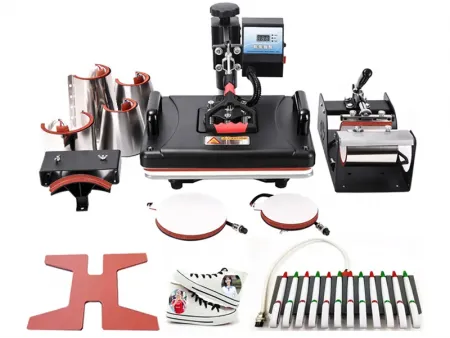 Our combo multifunction heat press machine transcends the capabilities of standard heat press devices, offering a versatile solution for transferring designs onto a wide array of flat and dimensional products. This machine is not only adept at handling traditional heat press applications but also expands its utility to accommodate items like mugs, metal pots, hats, plates of various sizes, footwear, pens, balls, and more, facilitating a broad spectrum of product customization.