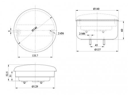 The rear fog LED lamp is used in busses, trucks, trailers and other specialty vehicles.