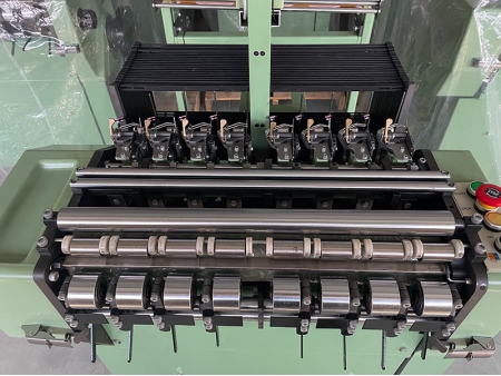 Narrow fabric loom is suitable for light to medium-weight elastic and non-elastic narrow fabrics. The weaving machine is designed with 53cm in width, and can weave 8 tapes at one time, each with max. width of 27mm and hooks of 20.