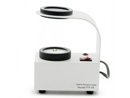 Different gemstones display unique optical reactions when observed under a gem polariscope, making it a valuable tool for gemstone identification. This instrument is designed to analyze a gemstone’s pleochroism, optic character, and polarization properties with ease. A standard gem polariscope consists of an upper and lower polarizing filter, a light source, a glass stage, and an interference sphere lens (except for the FPP-30 model). The lower polarizer remains fixed, while the upper one rotates to adjust polarization angles. A rotating glass stage positioned above the lower polarizer allows precise observation. The interference sphere lens is used to examine gemstone interference patterns, aiding in advanced optical analysis.