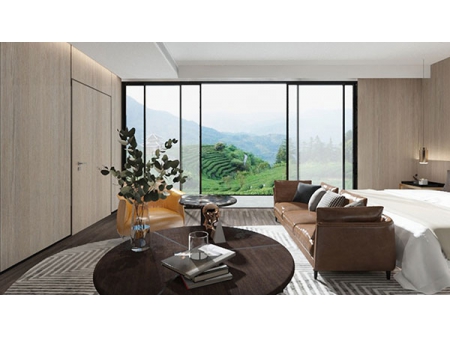 Our classic series prefabricated houses are suited for tourists who are looking for parent-child room or standard room, and ideal for building near beaches or on mountain areas with a spacious view. Each room is designed with an individual balcony, pool and lounger, and equipped an electric moving bed facing the scenery.