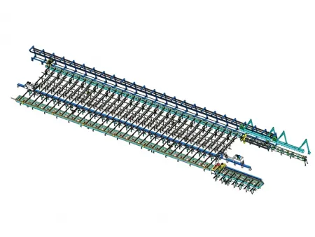 In an AAC production line, the cut concrete blocks will be turned 90 degrees by the overturn table, and waste material will be removed from the top of the block to the bottom using a scraper.